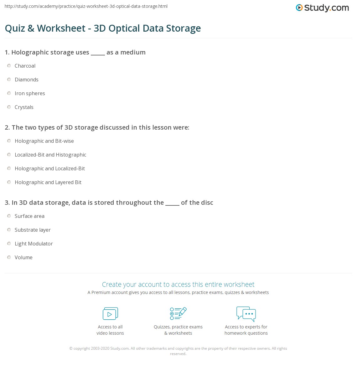 Data recording and readback are achieved by… Distributed computing, multimedia, movies, large web servers, and storage of permanent data (e.g., healthcare data or satellite imagery). Applications for 3d optical storage are many: Oct 21, 2019 · 3d optical data storage is an experimental storage technology predicted to offer exponentially more storage capacity than today's data storage technologies. Data recording and readback are achieved by…. Data recording and readback are achieved by…