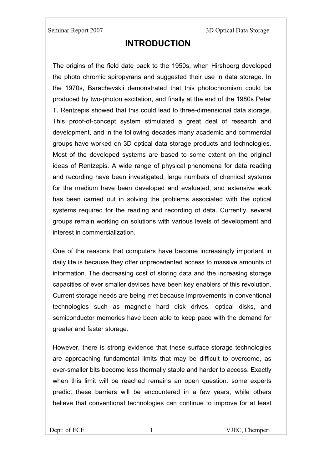 Applications for 3d optical storage are many: Distributed computing, multimedia, movies, large web servers, and storage of permanent data (e.g., healthcare data or satellite imagery). Data recording and readback are achieved by… Applications for 3d optical storage are many: